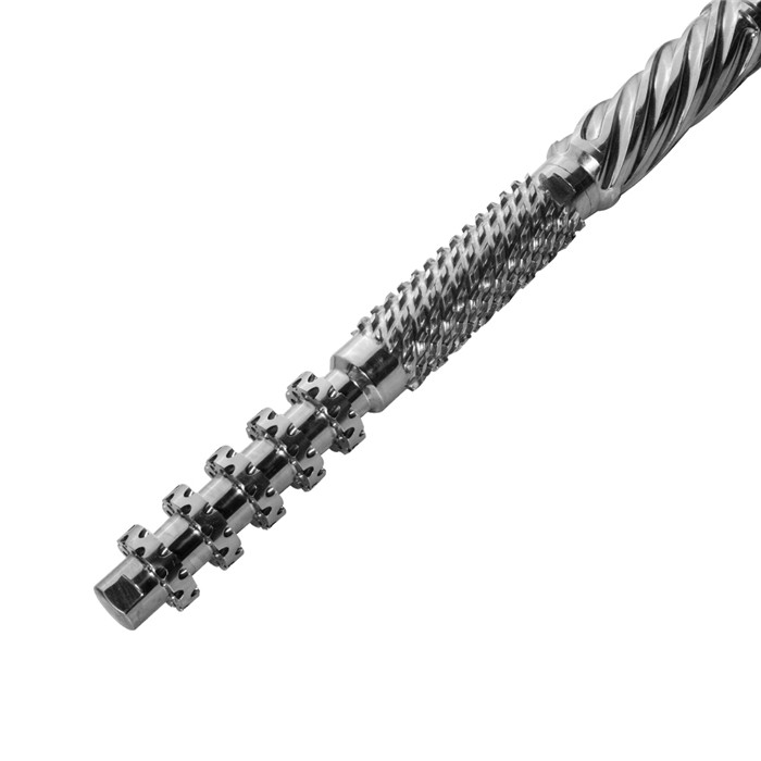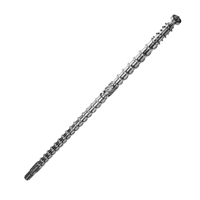针对不同塑料配比螺杆可选用:普通型,销钉型,屏障型,分离型,波状型等。